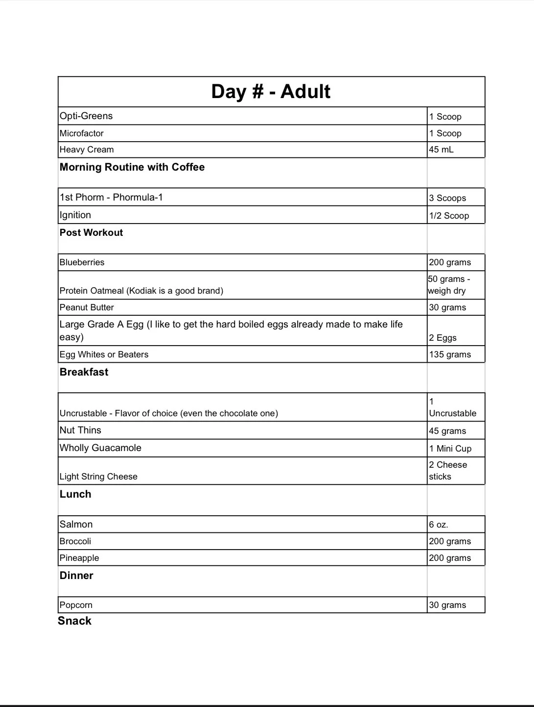 Adult Custom Meal Plan
